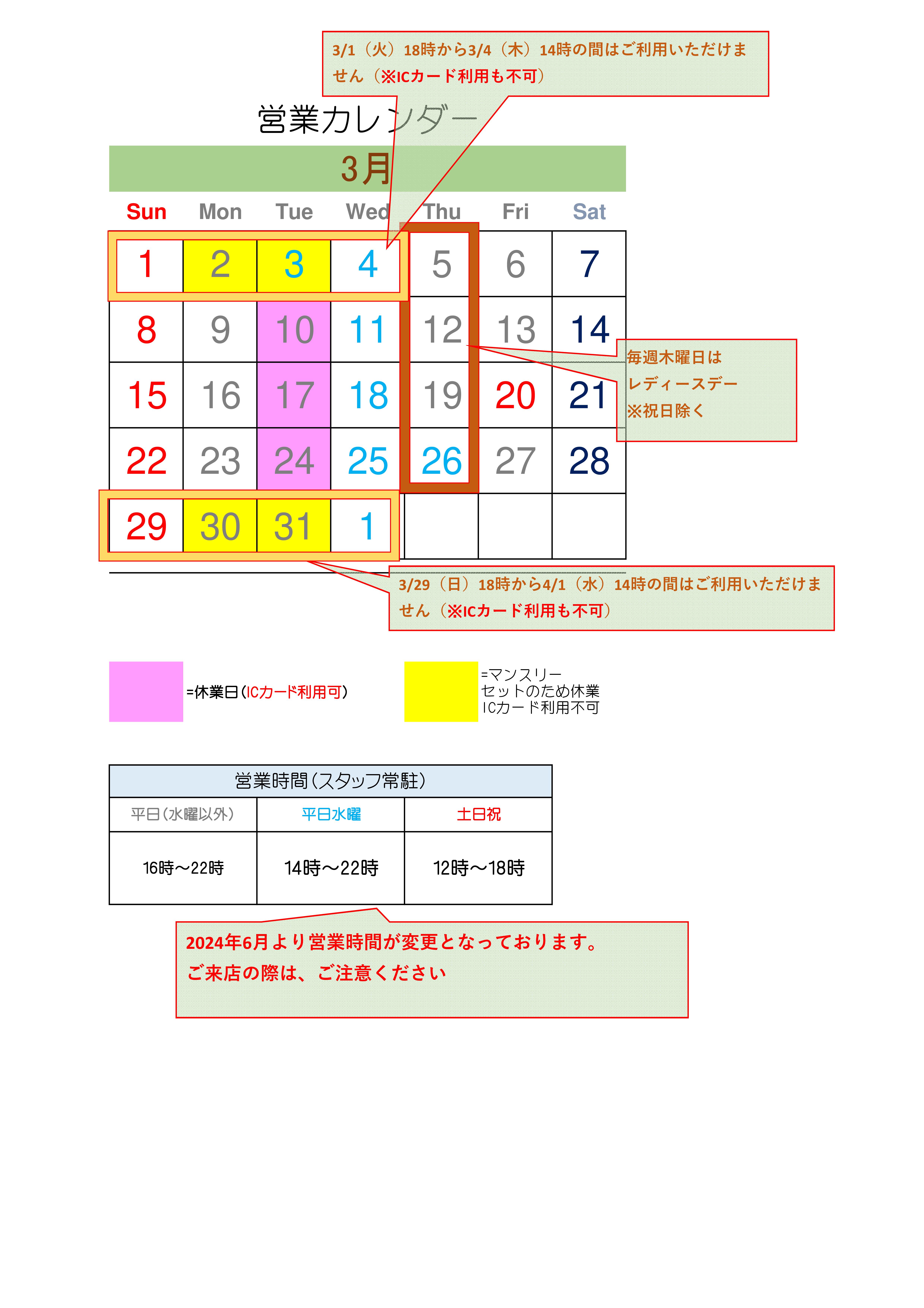 営業時間(2024年6月1日より)