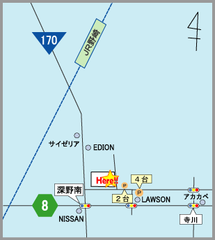 ①170号線の高架横看板を目指して進んでいただき「LINKS」の看板を越えたら