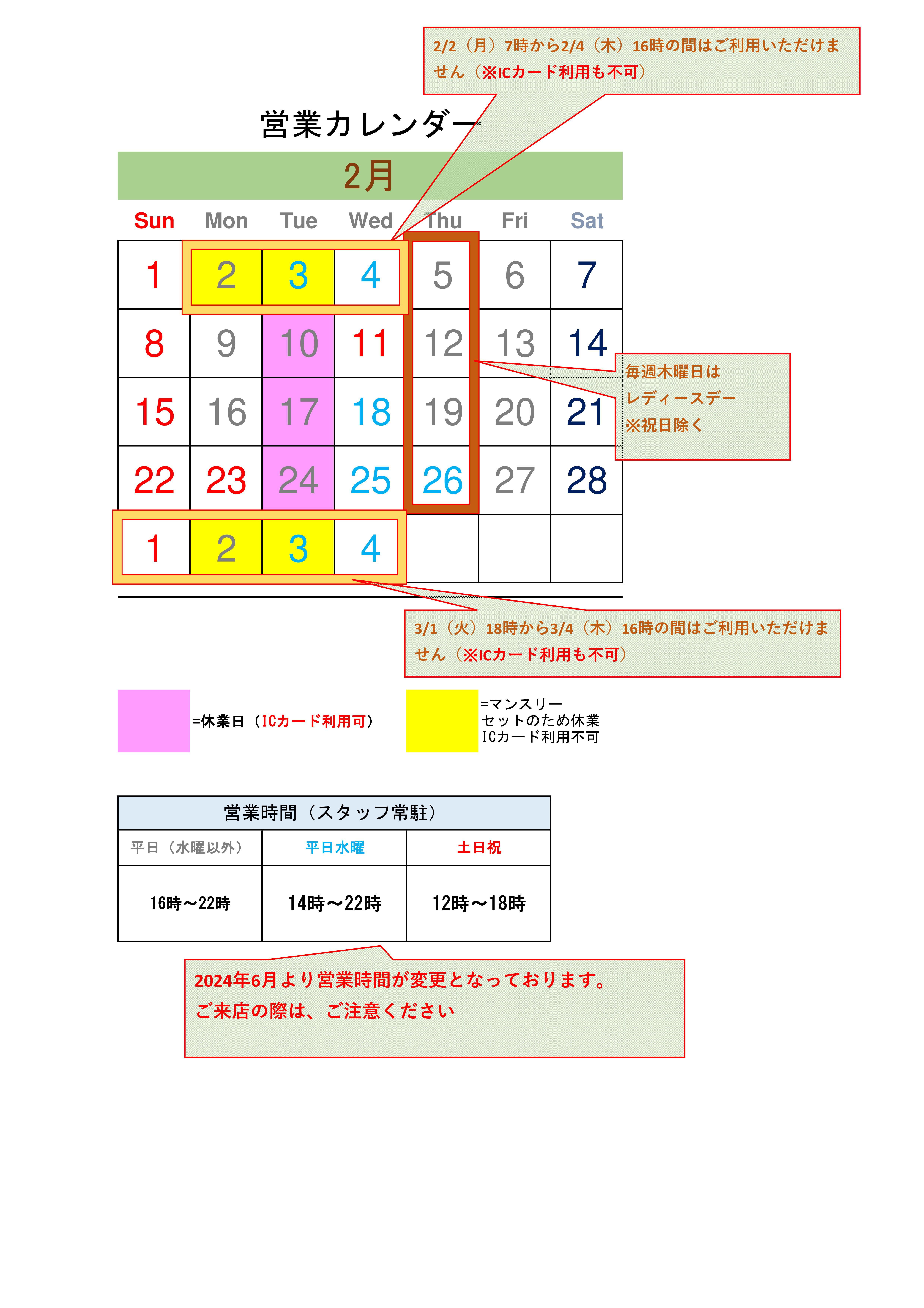 ※上記のほか、お盆休み・年末年始などの臨時休業や営業時間の変更の際は